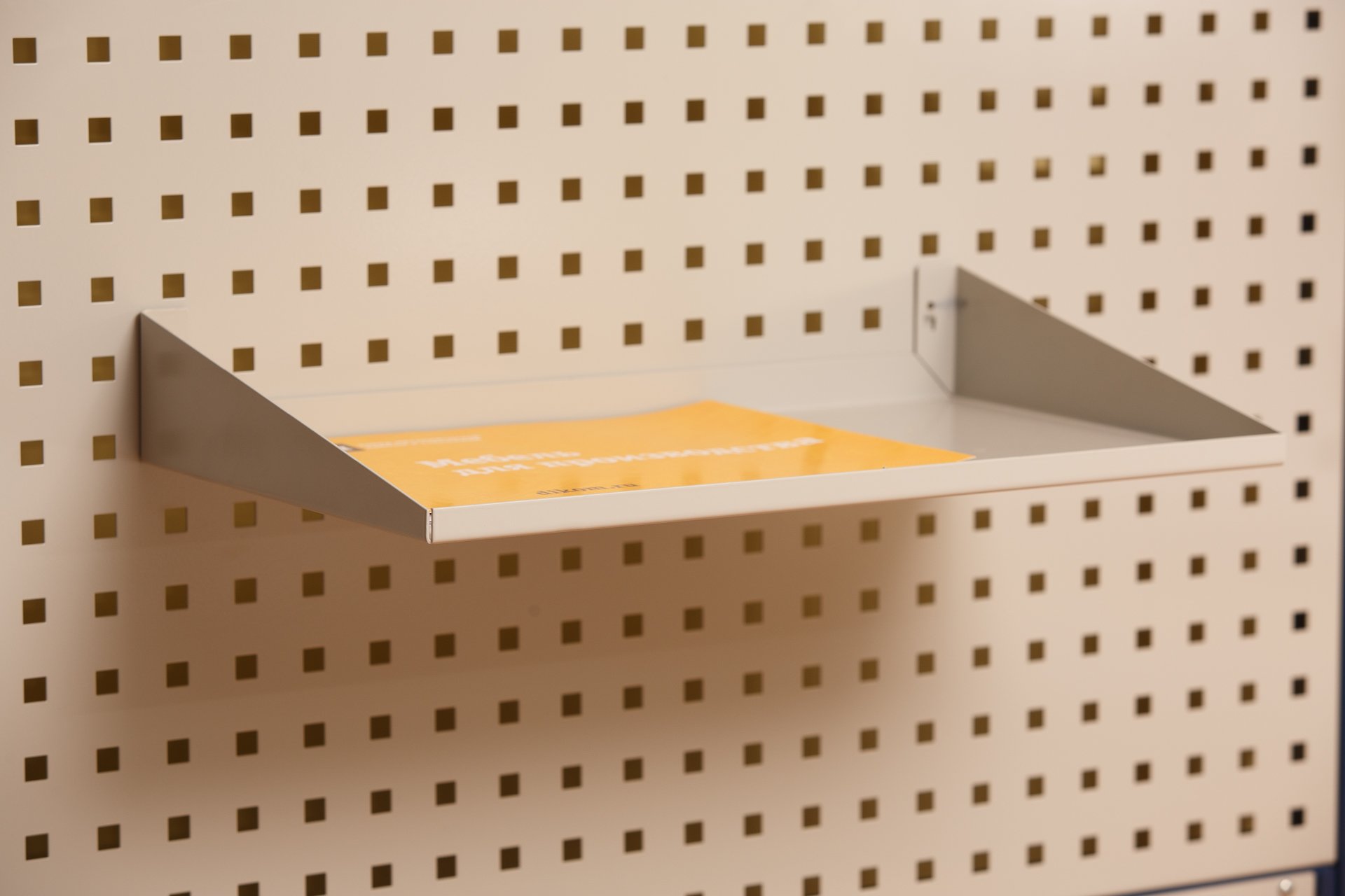 Устанавливается на перфорированные экраны мебели для производства ДиКом. Легко и удобно вешается на зацепы. Дополнительная фиксация саморезами.