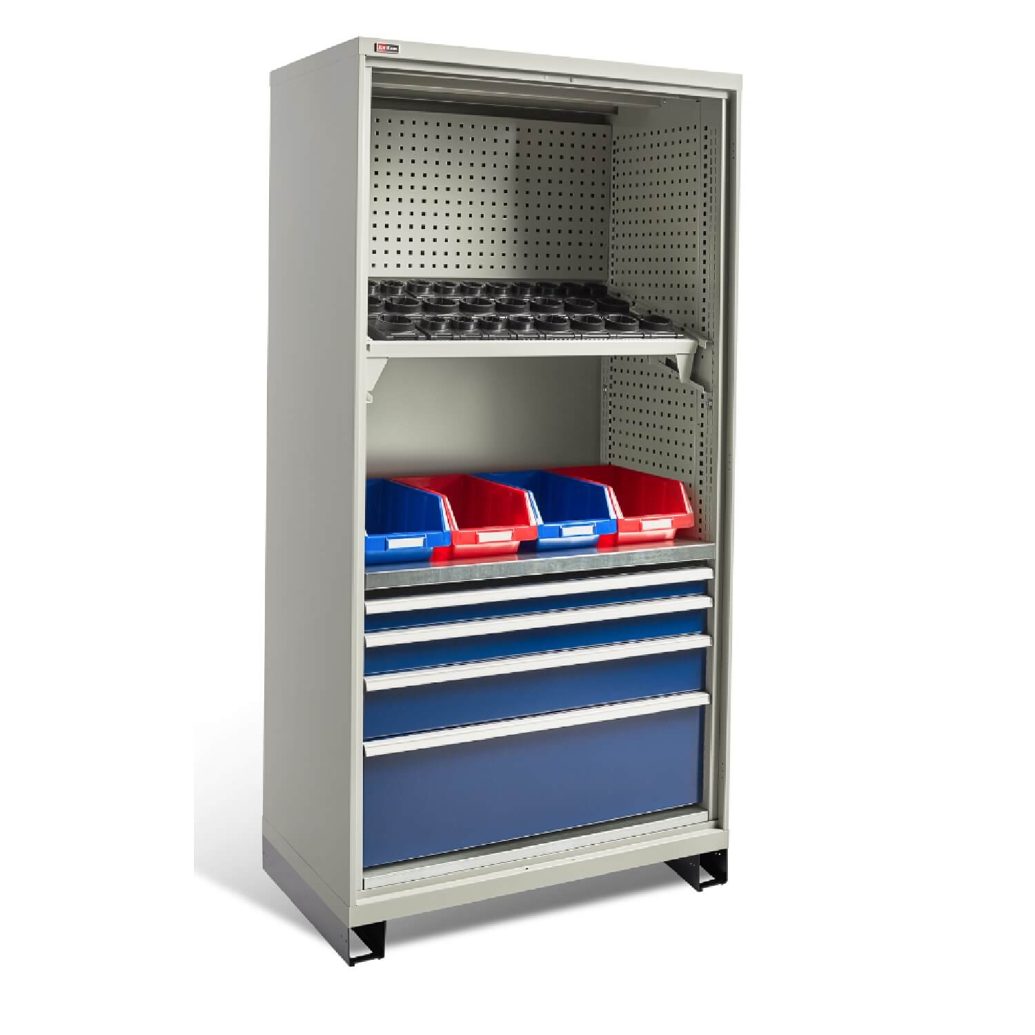 Внутреннее наполнение шкафа состоит из следующих модулей: ВC-05 Ящики разного размера, ВС-05 Полка цинк, ВС Платформа выкатная, Системы антиопрокидывания, ВС-053/055 Экраны боковые, ВС-03/05 Экран в тумбу, Салазки и Рамы под держатели инструмента и др. Шкаф моделируется индивидуально, с использованием перечисленных модулей.