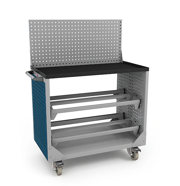 Боковые стенки представляют собой двойные перфорированные экраны. С внешней стороны тележки на них можно установить аксессуары к экранам — лотки, держатели инструмента и т.д. Между экранами установлены салазки для держателей инструмента. Сами держатели инструмента приобретаются дополнительно. Подробнее о системе хранения инструмента.
