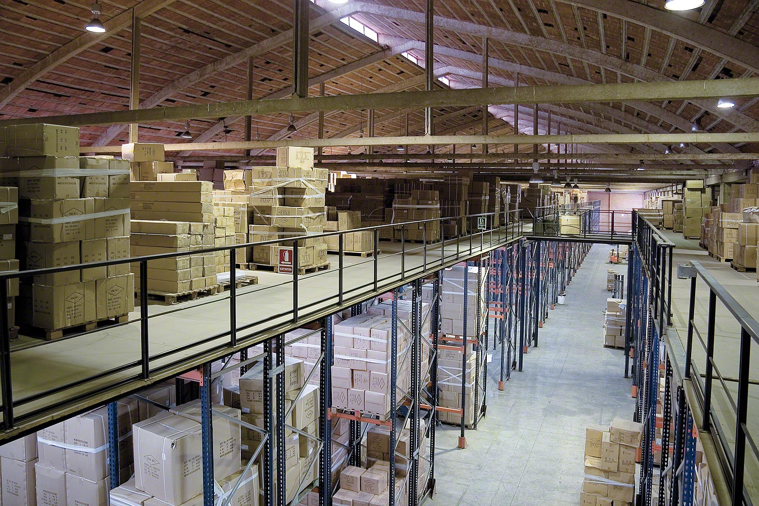 Мезонин — это разновидность многоуровневой стеллажной системы, предназначенная для логистических и промышленных комплексов, подразумевающих ручную и комбинированную обработку грузов. Система паллетных или полочных стеллажей, разделенных на ярусы МДФ или металлическими панелями, дает возможность обрабатывать груз на любой высоте, позволяя оптимально задействовать пространство склада.