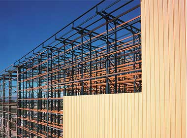 Складирование товаров на большую высоту с максимальным использованием доступной площади. Стеллажи – часть конструкции здания.