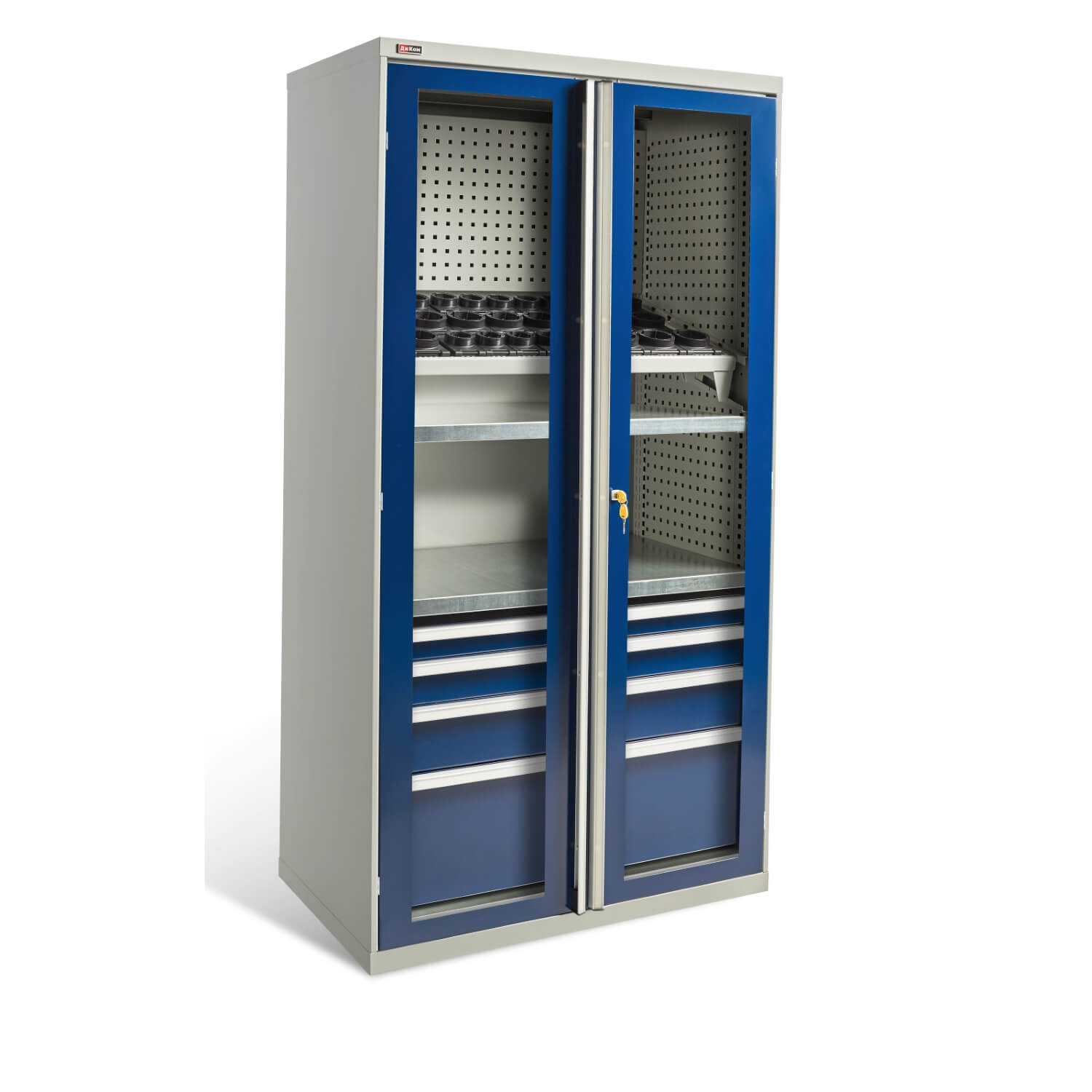 Внутреннее наполнение шкафа состоит из следующих модулей: ВC-05 Ящики разного размера, ВС-05 Полка цинк, ВС Платформа выкатная, Системы антиопрокидывания, ВС-053/055 Экраны боковые, ВС-03/05 Экран в тумбу, Салазки и Рамы под держатели инструмента и др. Шкаф моделируется индивидуально, с использованием перечисленных модулей.