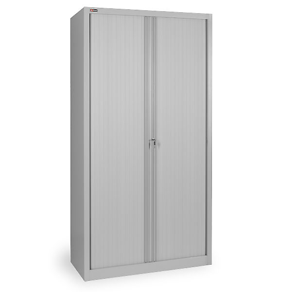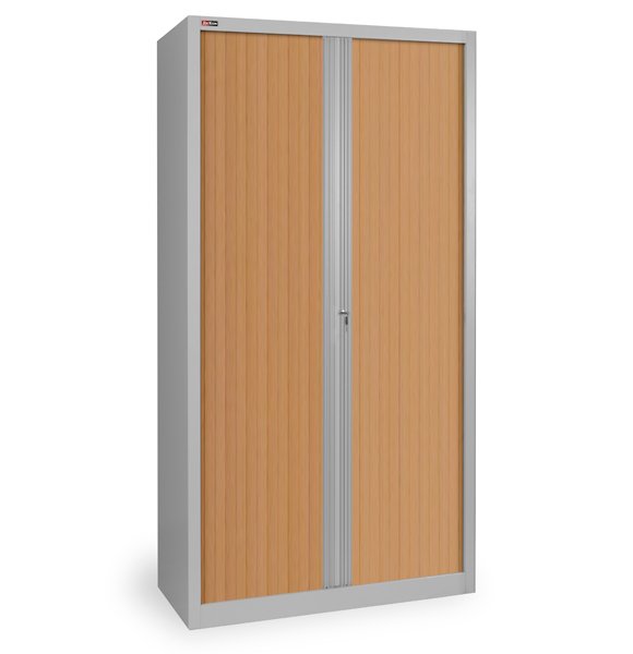 Корпус шкафа и полки окрашены порошковой краской серого цвета RAL 7038. Пластиковые двери-жалюзи шкафа доступны в трёх вариантах: серый, бук и вишня.