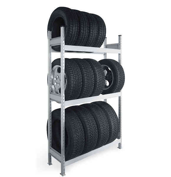 Стеллаж используется для вертикального хранения автомобильных шин (дисков) на балках, расстояние между которыми меньше диаметра шин (дисков).