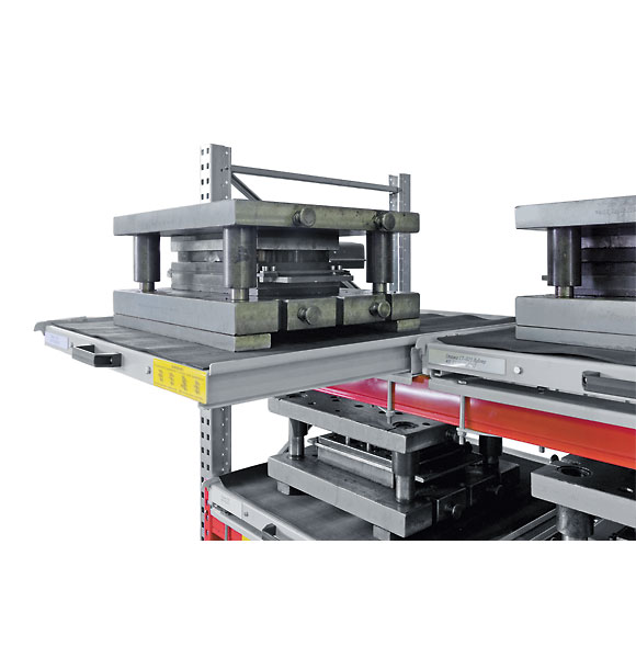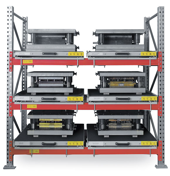 Cтеллаж предназначен для хранения и рационального размещения инструментальной оснастки, штампов, пресс-форм и прочих тяжелых грузов. Главной его особенностью являются выкатные платформы, которые позволяют использовать кран для загрузки-выгрузки крупногабаритных грузов и обеспечивают к ним удобный доступ. Стеллаж помогает сохранить дорогостоящие грузы в идеальном состоянии и сэкономить место в производственных помещениях.