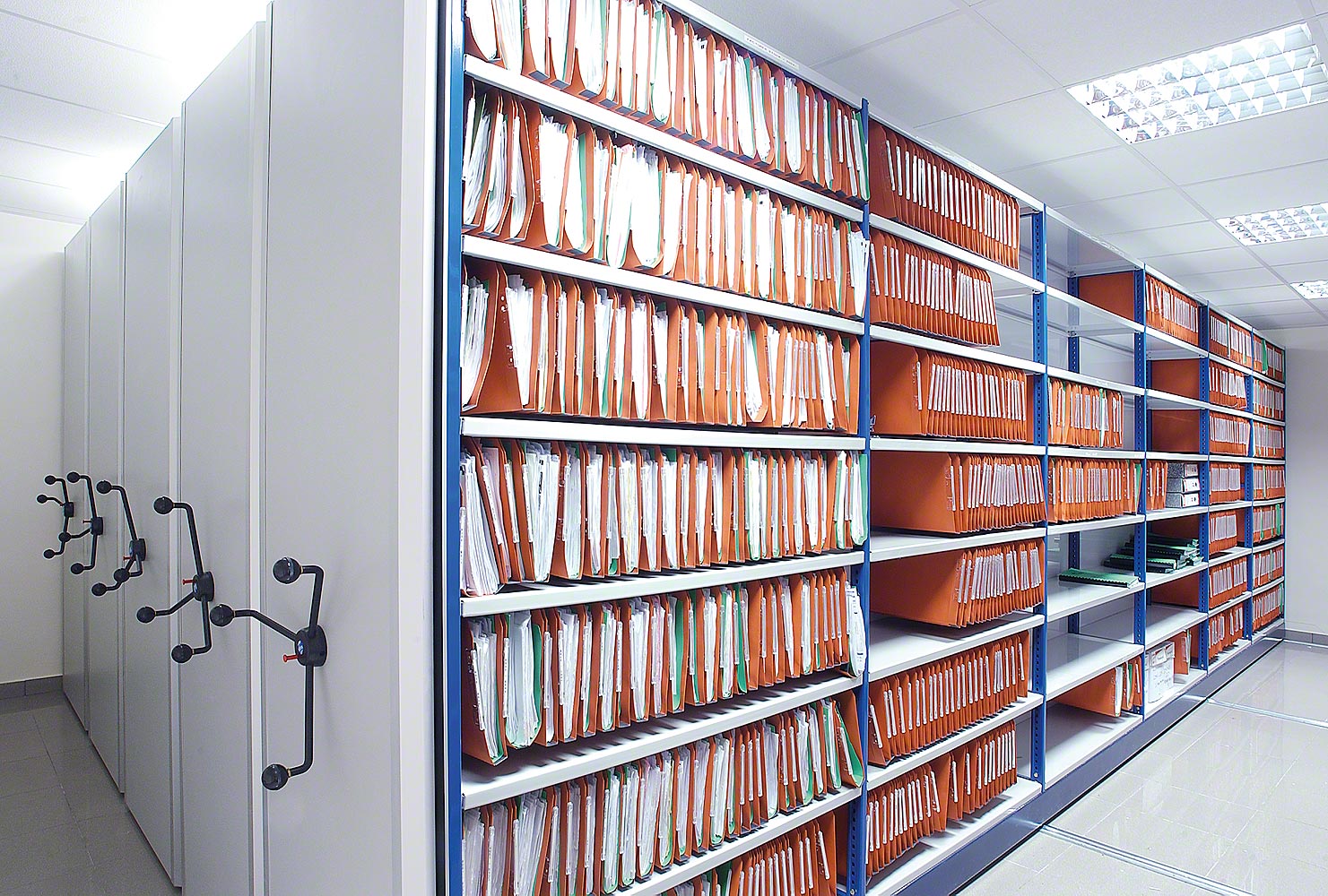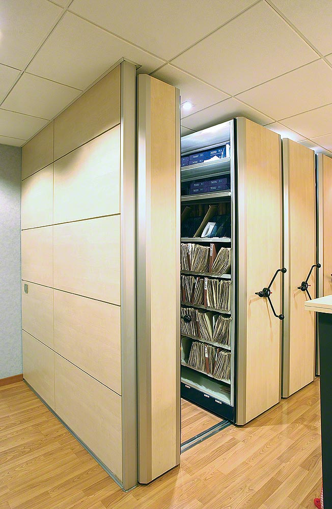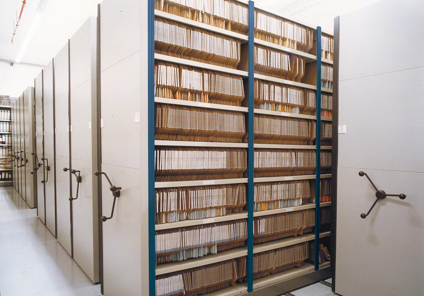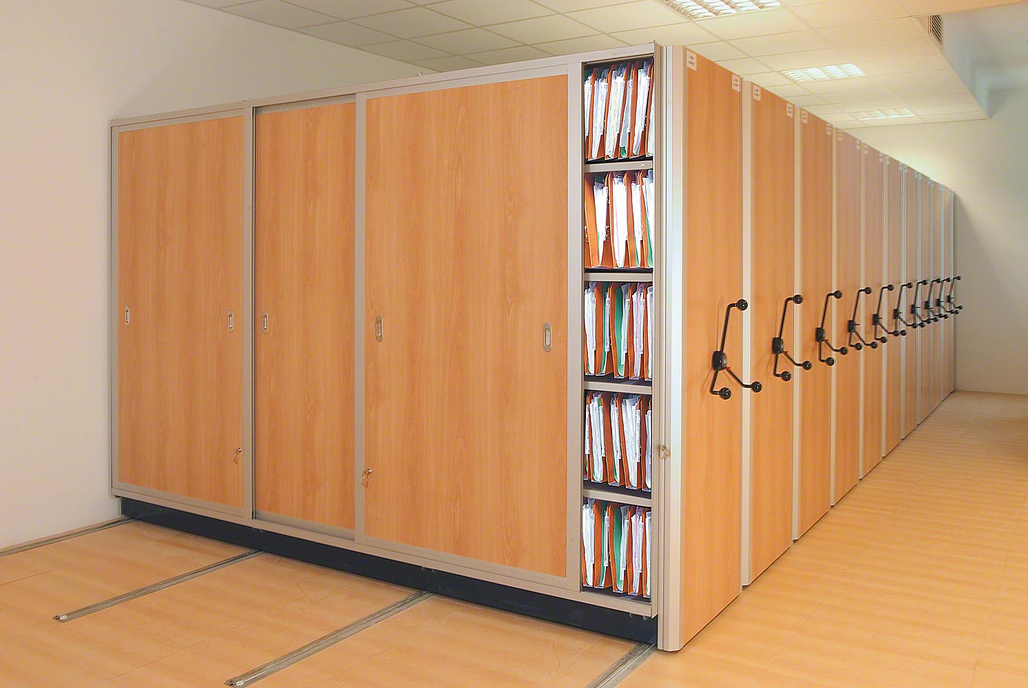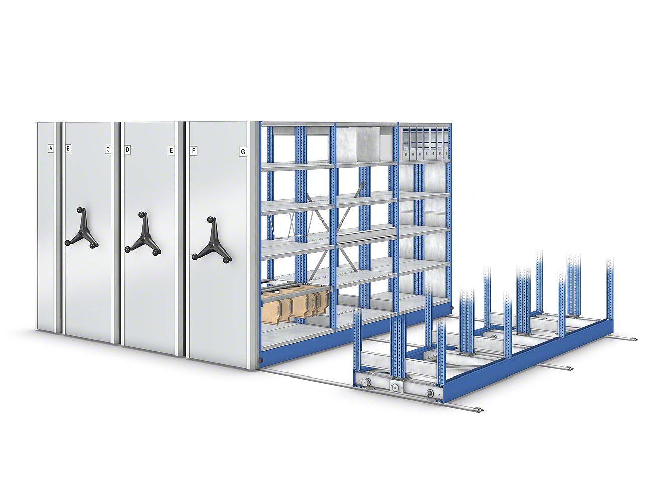 Стеллажная конструкция устанавливается на подвижную базу и перемещается по рельсам, что гарантирует порядок и оптимальное распределение складских или архивных модулей, а также значительную экономию места. Передвижные полочные стеллажи обеспечивают хорошую организацию архивных материалов и их защиту от несанкционированного доступа.