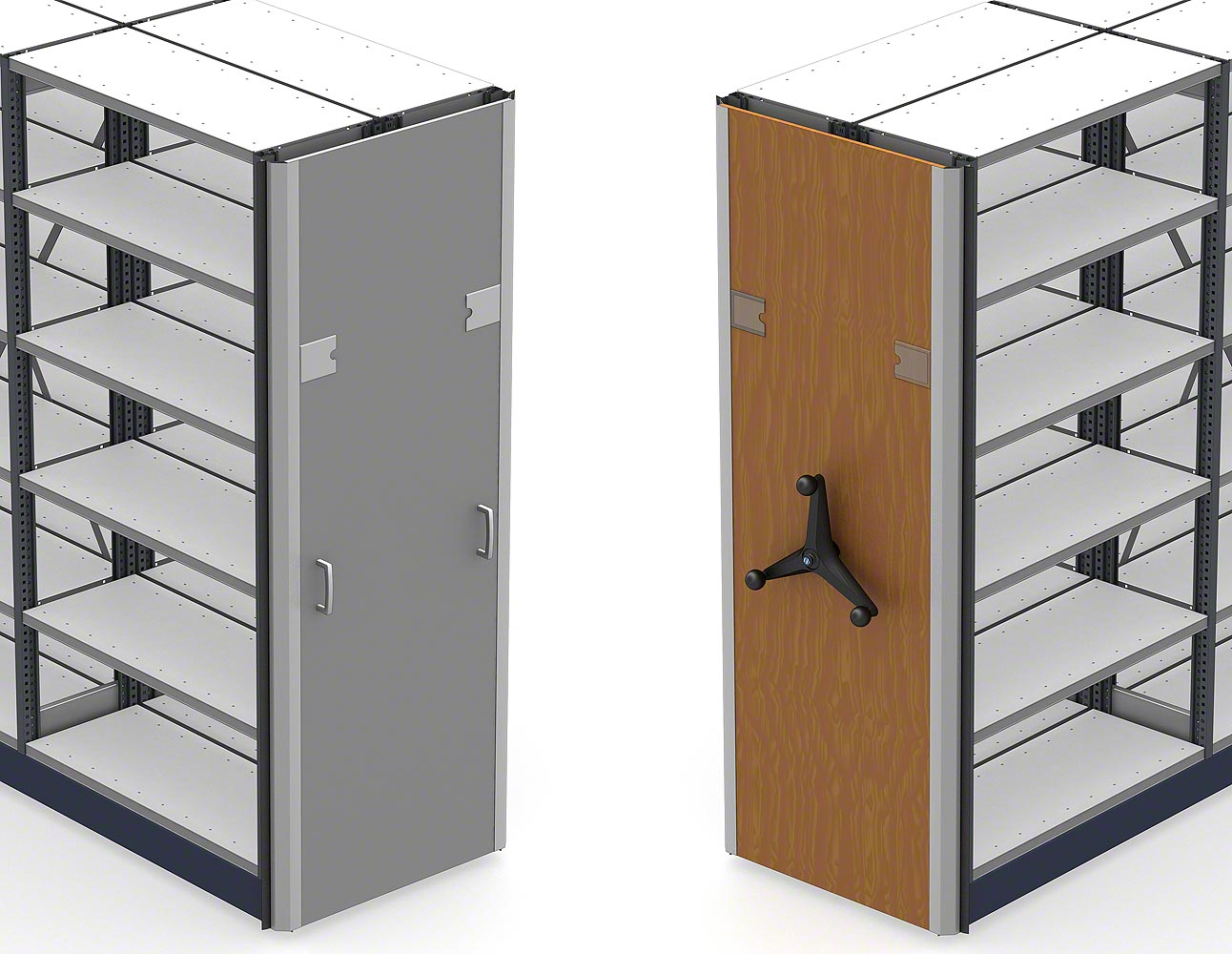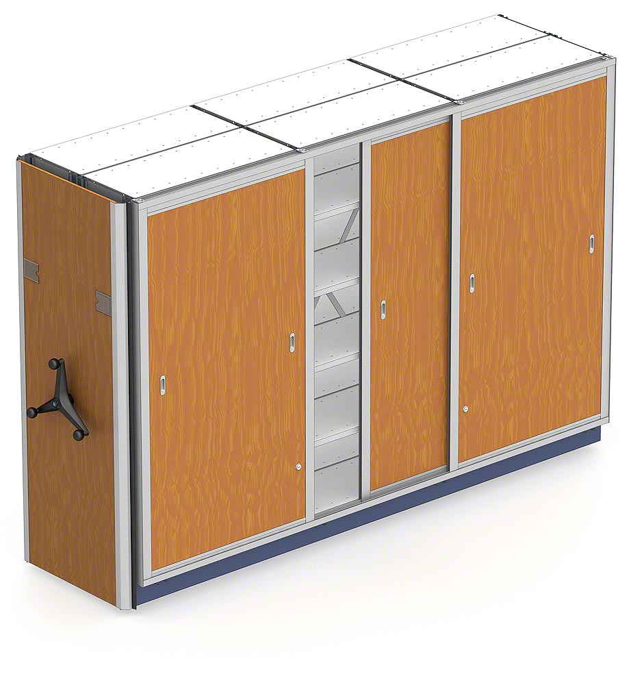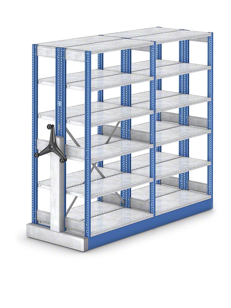 Перемещение вручную подходит для легких грузов, в частности для архивов, офисов. Передвижение осуществляется при помощи ручек, расположенных на внешней стороне каждого модуля.