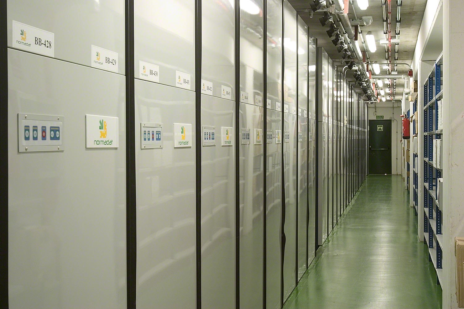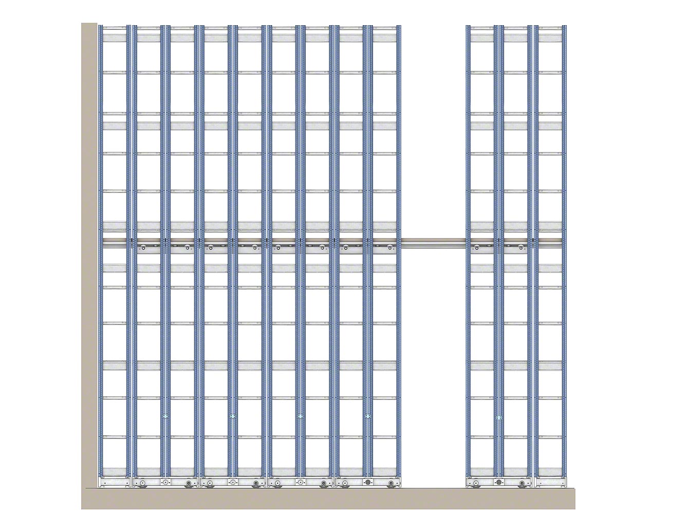 Автоматический механизм скольжения активируется нажатием выключателя, который автоматически меняет позицию стеллажа для обеспечения доступа к товару. Система перемещения состоит из редукторного электродвигателя, который не требует эксплуатационного ухода благодаря собственной системе непрерывного охлаждения масла. Данный модуль оснащен системой безопасности, предотвращающей самопроизвольное движение стеллажа при нахождении персонала в проходе.