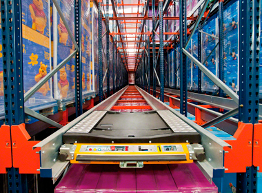 Эта система транспортировки организует и контролирует загрузку и выгрузку поддонов в местах с плотным размещением грузов.